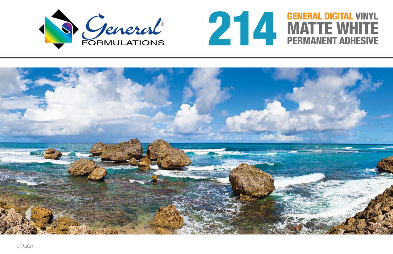 GF 214 is a 3.0 mil matte white vinyl with a permanent clear acrylic pressure sensitive adhesive on a 90# layflat liner.