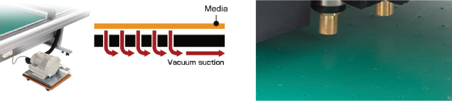 Distance between the holes has been improved from 30 mm on FC2250 Series to 20 mm on FCX2000 Series, as a result, FCX2000 Series provides stronger suction power to hold heavier and thicker medias down.