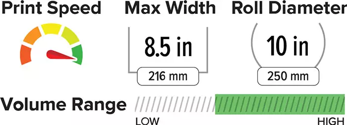 - Fast print speeds (≤ 12 IPS)